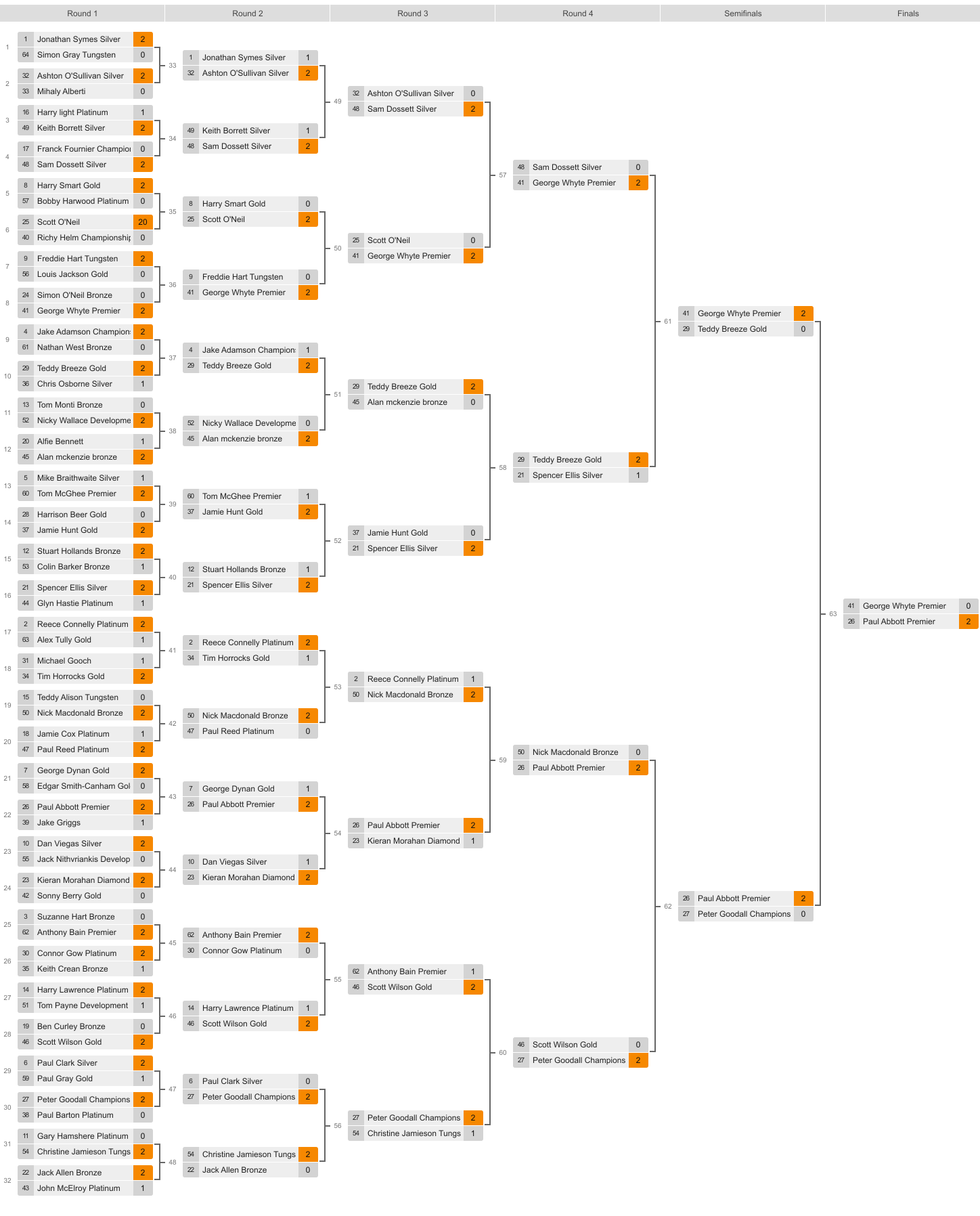 Some terrific arrows thrown last night but it came down to 2 Premier League boys in the final Paul Abbott vs George Whyte. Which Paul came out on top 2-0!